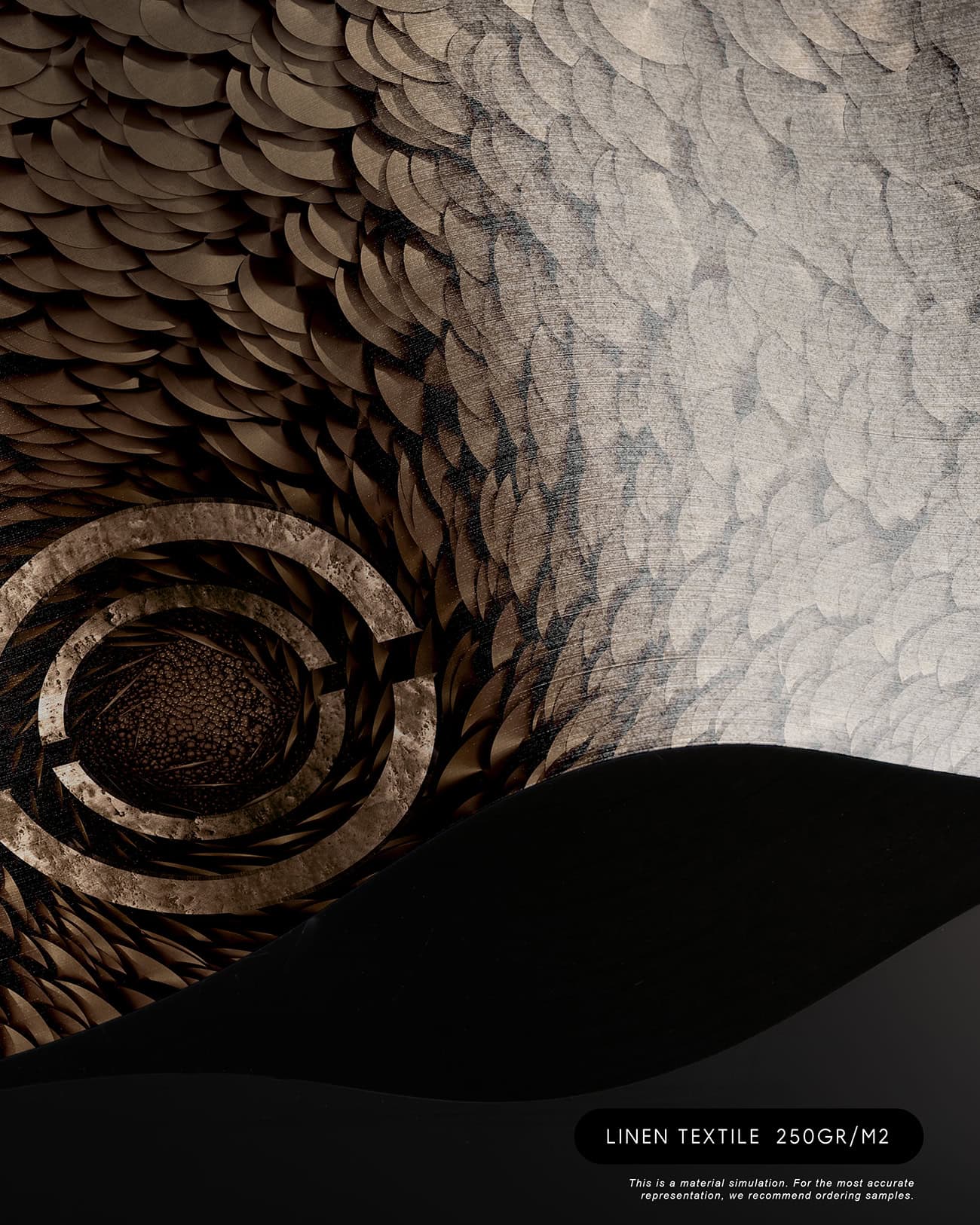 Eine luxuriöse Wandbekleidung mit einer gewebten Seideneffekt-Oberschicht in warmem Goldton auf einem Vliesträger. Die metallische Seidenoberfläche erzeugt ein reiches Wechselspiel von Licht und Schatten und verleiht jedem Innenraum Tiefe und Opulenz. Ideal für Akzentwände, Gastronomiebereiche und hochwertige Wohnprojekte, bei denen ein ausdrucksstarkes Material gewünscht wird. Die Seidentextur verändert sich subtil in ihrer Erscheinung je nach Lichteinfall und verleiht jeder Installation eine einzigartige, lebendige Qualität. Waschbar und trocken abziehbar.