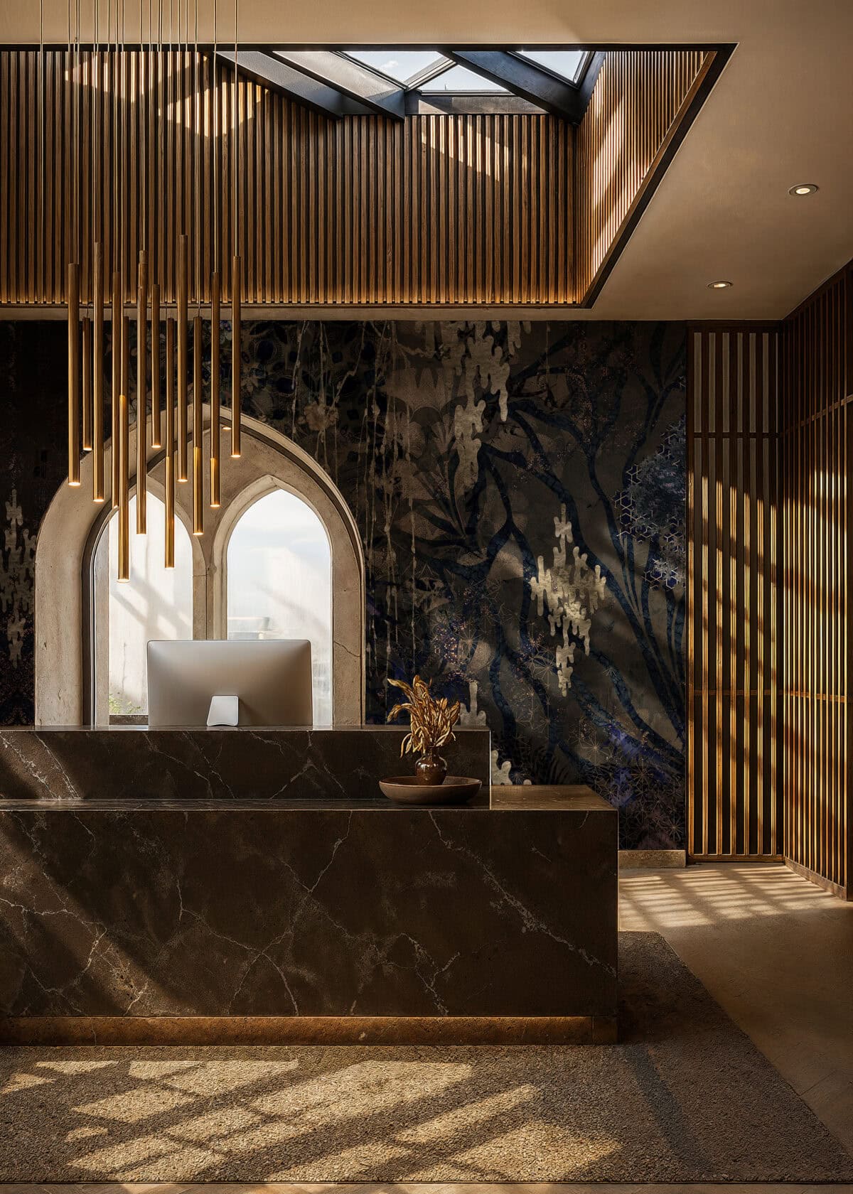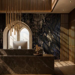 Architectural wallcoverings designed with a high level of detail, developed to scale and adapt seamlessly to professional interior projects.