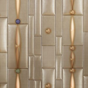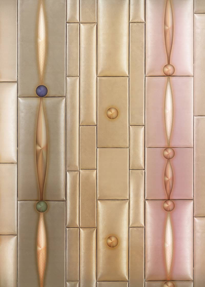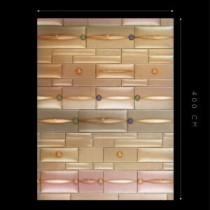 Beaded Gold is a luxury rug for private residences that transforms the floor into a softly luminous surface of sculpted metal and pastel light. Faceted vertical panels in warm…