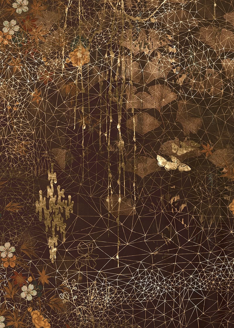 Goddess of Orion is a luxury rug for private residences that layers delicate botanical forms, cascading golden droplets and an intricate web of constellation-like geometric…