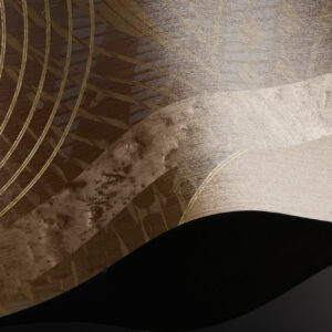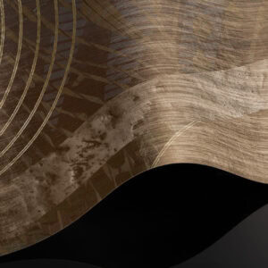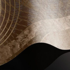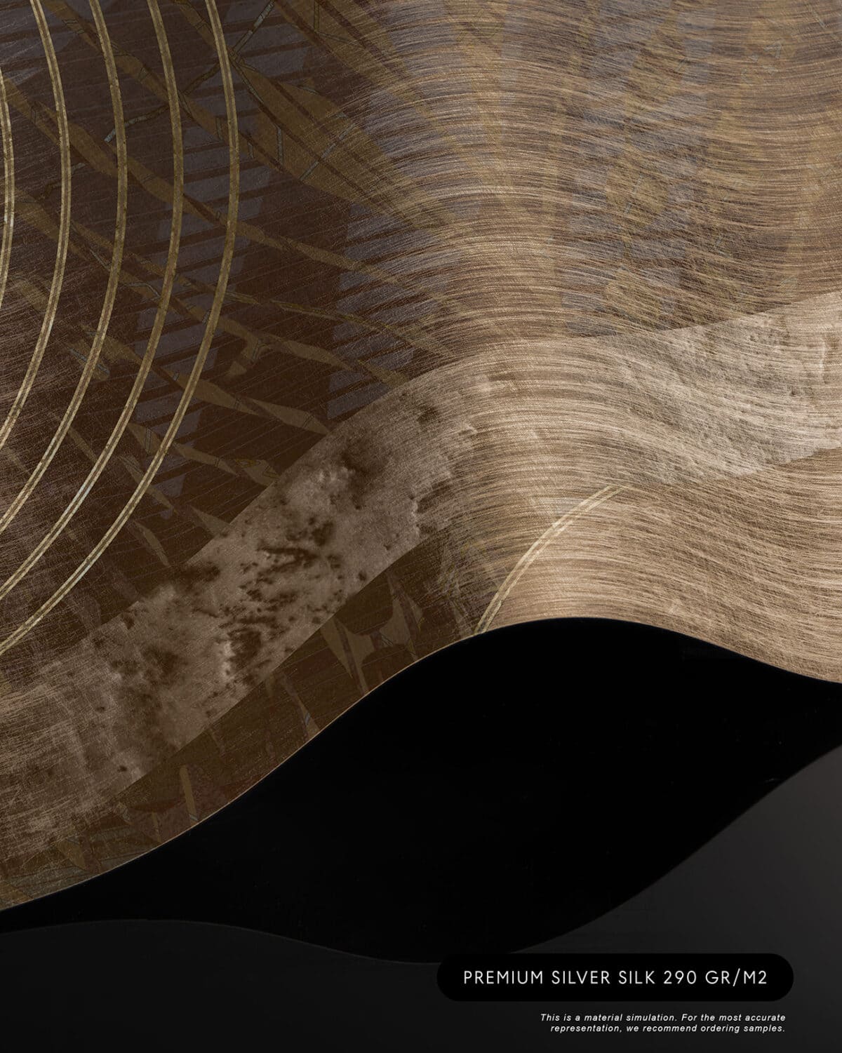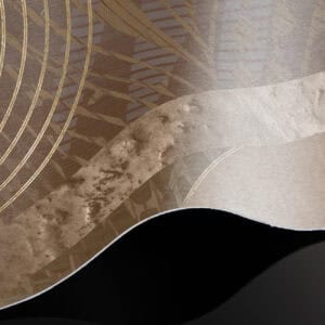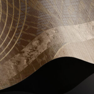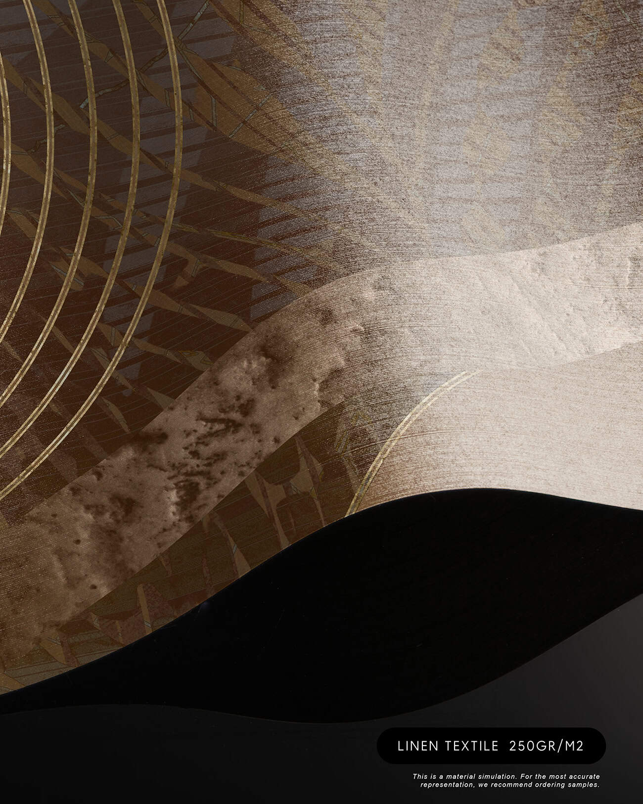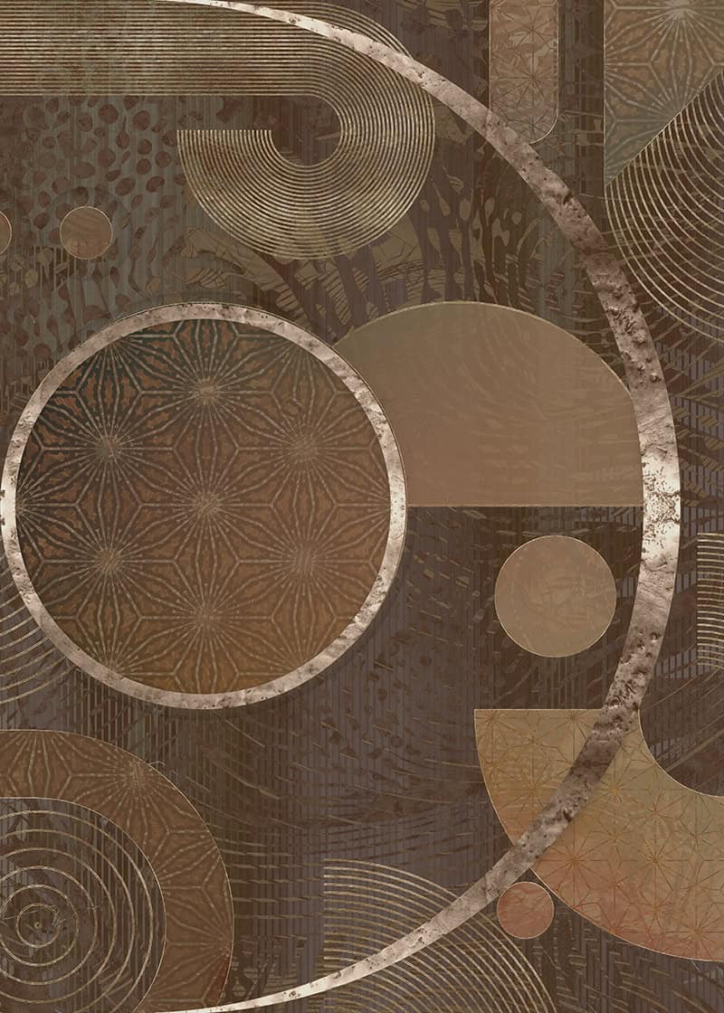 Tronix is a geometric architectural wallcovering that fuses sacred geometry with industrial texture. Overlapping circles, concentric arcs and mosaic-like tessellations are rendered in warm bronze, burnished copper, soft taupe and muted gold. Fine line engravings recall architectural draftsmanship, while weathered stone and metallic surfaces add a sense of material depth. The result is an abstract wall mural that feels both ancient and futuristic, equally suited to a private members’ lounge, a luxury show home mural wallpaper installation or a high-end hospitality lobby. Produced as a bespoke mural for residential projects, Tron offers interior designers a refined geometric pattern with enough visual complexity to anchor an entire room without overwhelming the wider scheme.