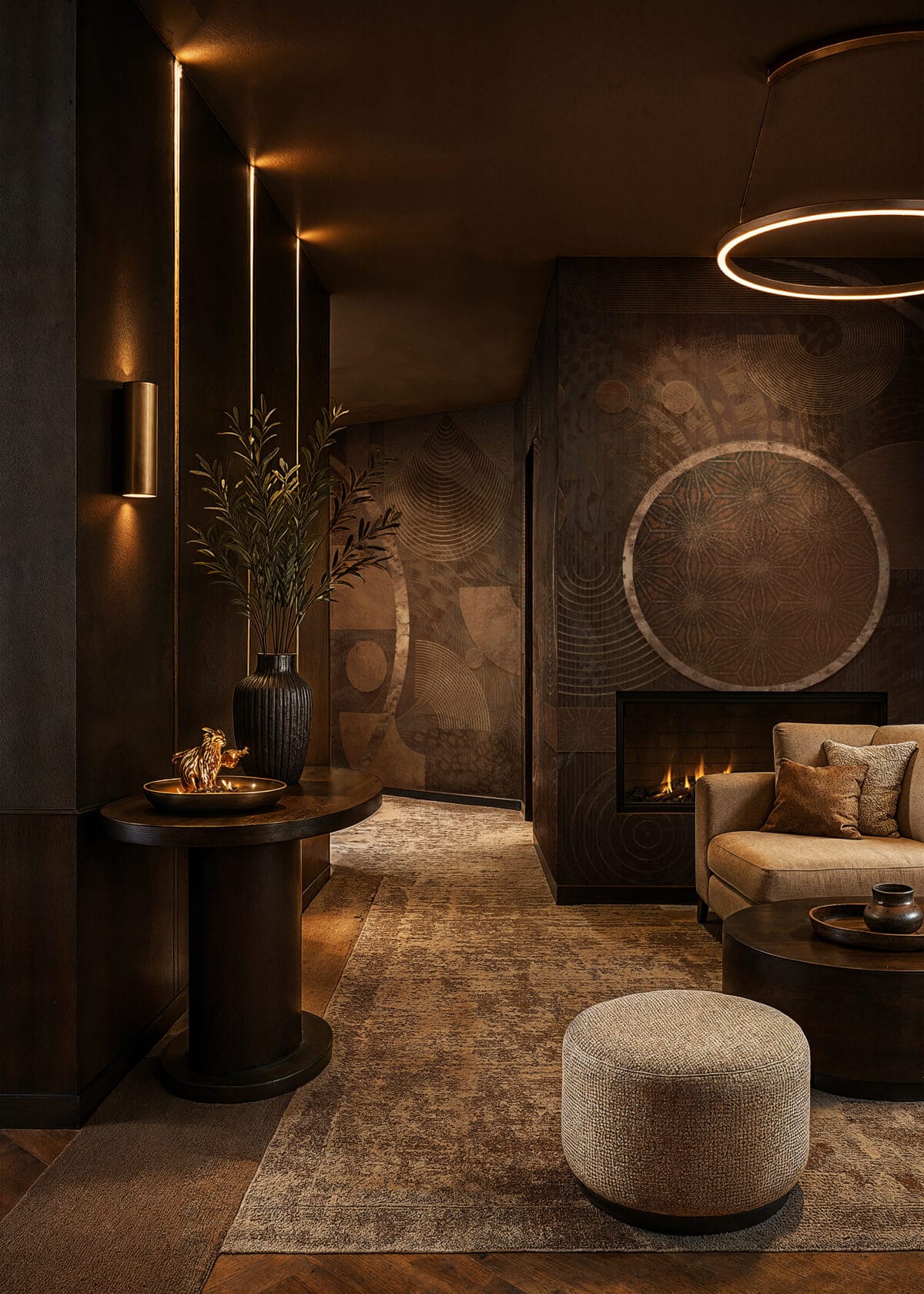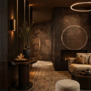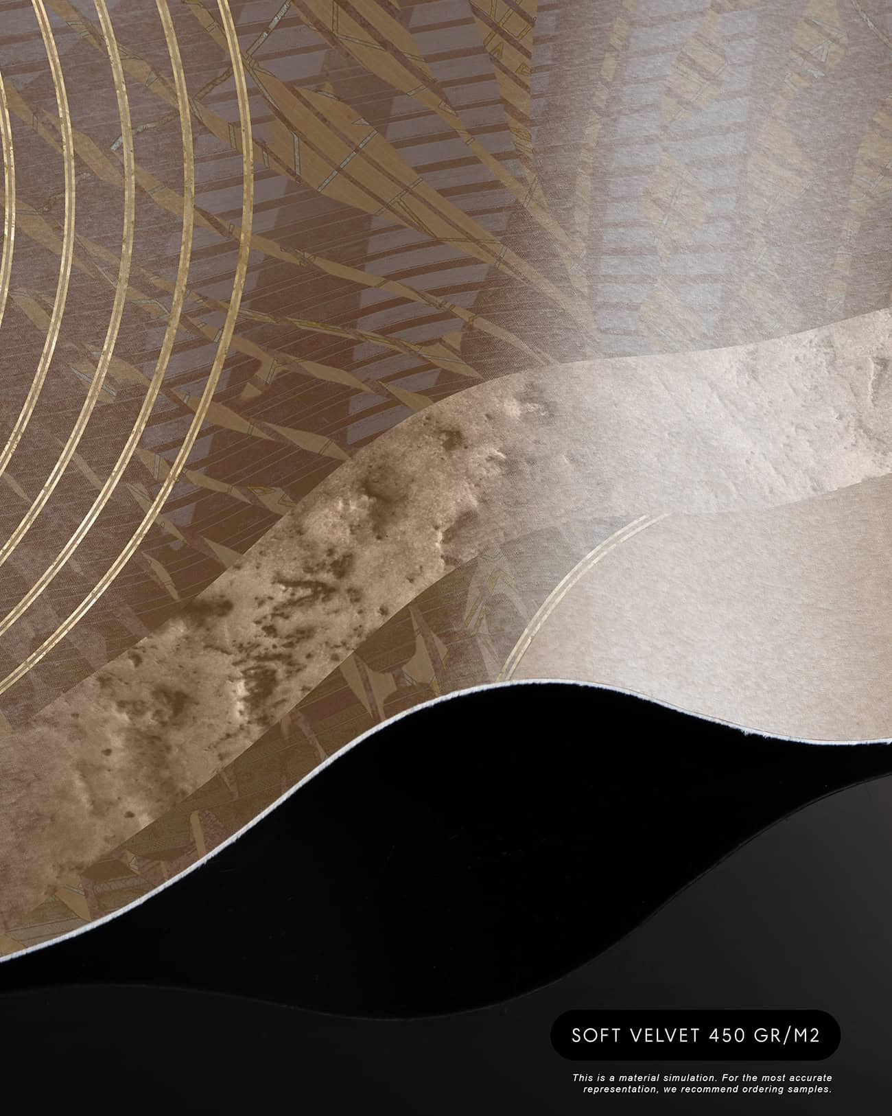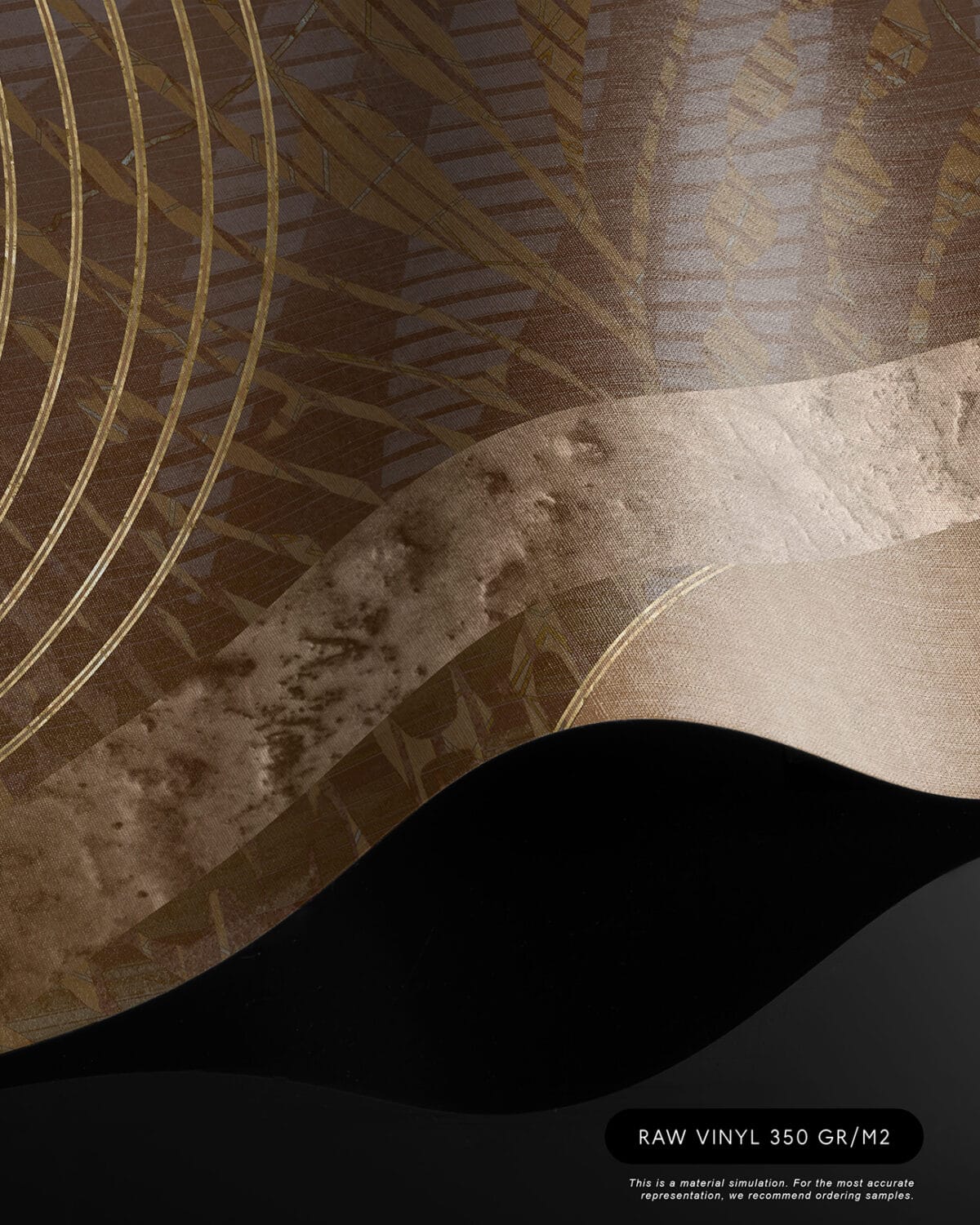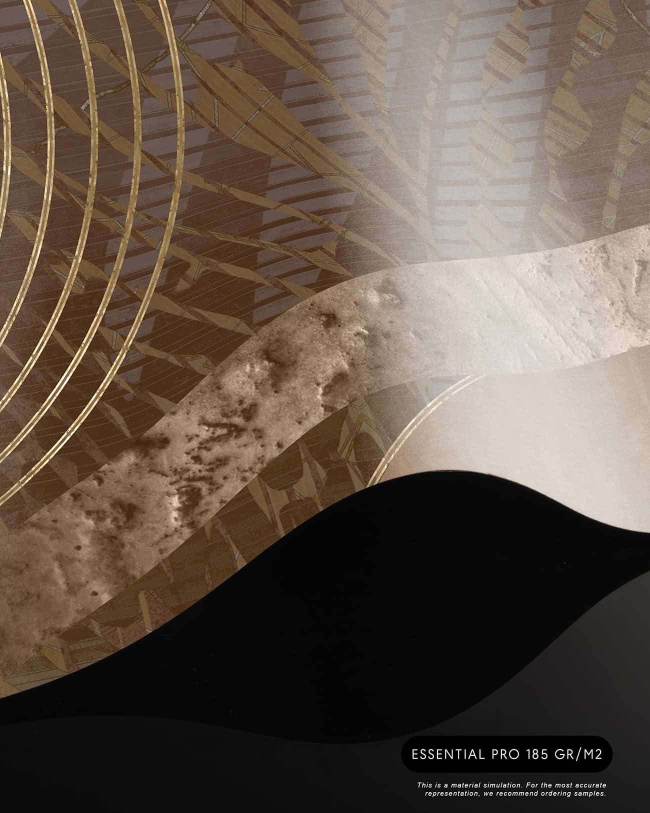 Tronix is a geometric architectural wallcovering that fuses sacred geometry with industrial texture. Overlapping circles, concentric arcs and mosaic-like tessellations are rendered in warm bronze, burnished copper, soft taupe and muted gold. Fine line engravings recall architectural draftsmanship, while weathered stone and metallic surfaces add a sense of material depth. The result is an abstract wall mural that feels both ancient and futuristic, equally suited to a private members’ lounge, a luxury show home mural wallpaper installation or a high-end hospitality lobby. Produced as a bespoke mural for residential projects, Tron offers interior designers a refined geometric pattern with enough visual complexity to anchor an entire room without overwhelming the wider scheme.